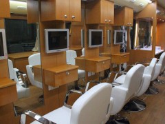 車載式移動理發(fā)車/美容美發(fā)車不僅有沙龍鏡、沙龍椅、專業(yè)的洗頭臺、燙發(fā)機,還有電視、空調(diào)、勁爆的音響和絢麗的燈光,儼然一艘理發(fā)“航母”,里面裝修配置煞是吸人眼球-理發(fā)車、化妝車、美甲車定制15271321777